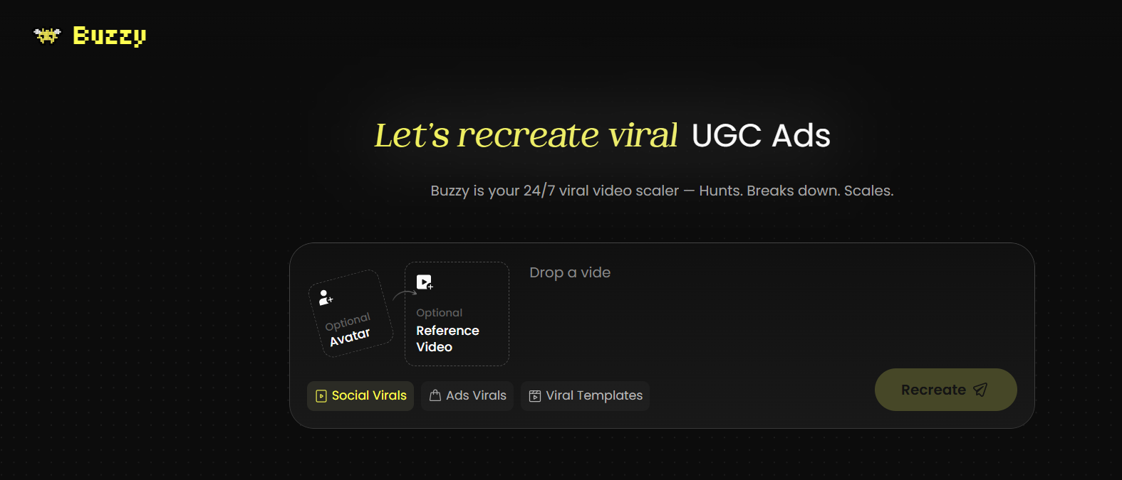 2️⃣ Let Buzzy scan viral patterns: It analyzes trending ads, breaks down the “viral recipe,” and identifies structures that convert.