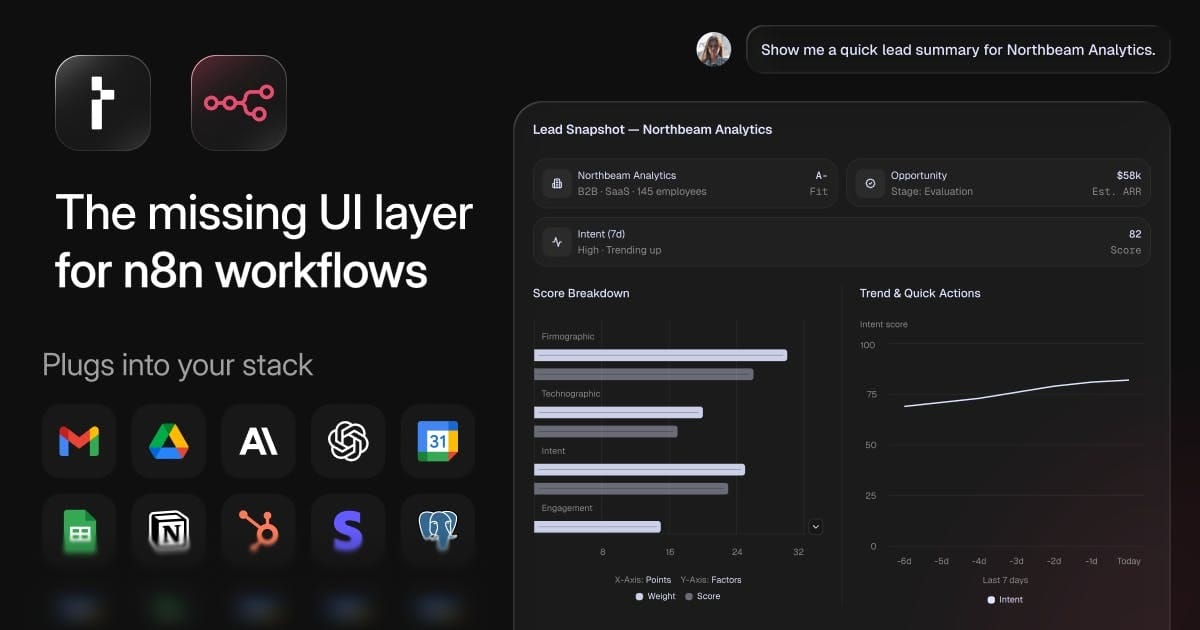 If you’re already using n8n, you’re sitting on powerful logic. C1 by Thesys is the missing layer that turns those workflows into real AI apps with interactive UIs.