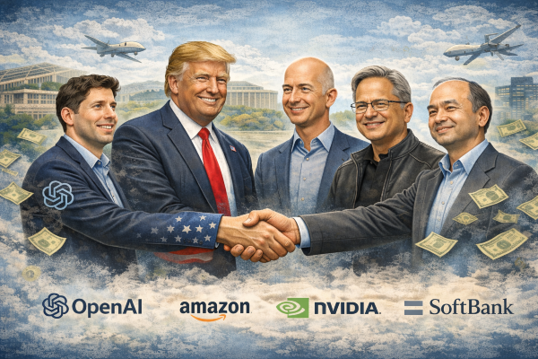 In the meantime, OpenAI raised $110B at a $730B valuation, led by $50B from Amazon and $30B each from Nvidia and SoftBank, with Microsoft notably absent from the round.