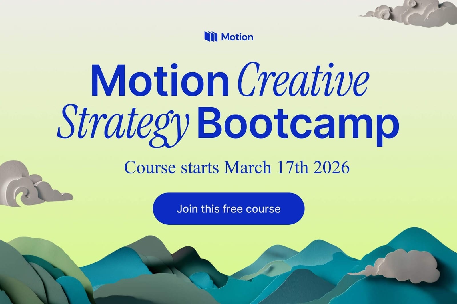 Motion’s Creative Strategy Bootcamp is a free, 8-week live program built for you to learn how to run a full creative sprint, from idea to insight, without guesswork.