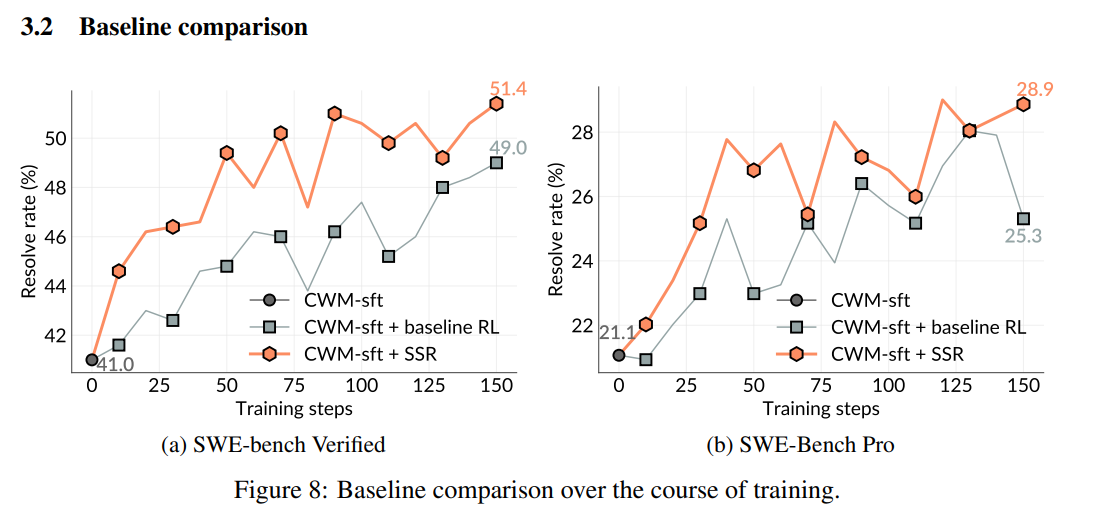 4. Strong benchmark gains - On SWE-bench Verified and Pro, the approach delivered 7–10 point absolute improvements and outperformed baselines trained on human data.