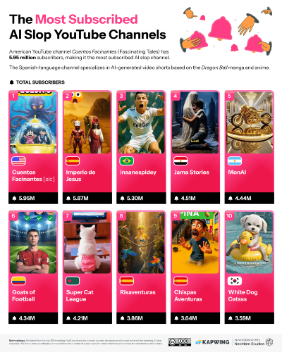 Kapwing released a report on the global rise of AI slop, defined as low-quality auto-generated content made to farm views and distinct from thoughtful AI-assisted videos. The study analyzed trending channels and new user feeds to measure scale and exposure.