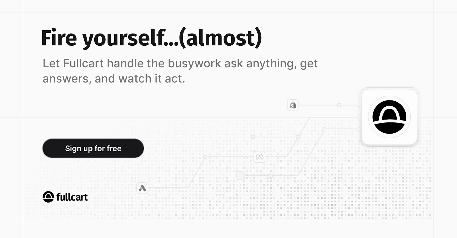 Fullcart is the AI Operator that analyzes your data across every platform, surfaces what’s breaking, and tells you exactly what to fix before it hurts your P&L.
