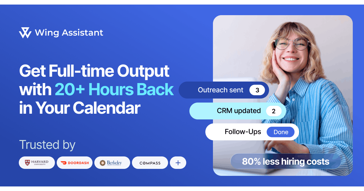You can get an Executive/General Assistant from Wing to improve admin, scheduling, inbox, and CRM.