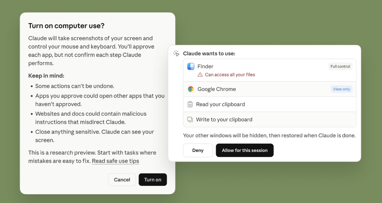 Anthropic released computer use for Claude, letting it open apps, navigate browsers, and complete tasks directly on your Mac. It's live as a research preview in Cowork and Claude Code for Pro and Max users.